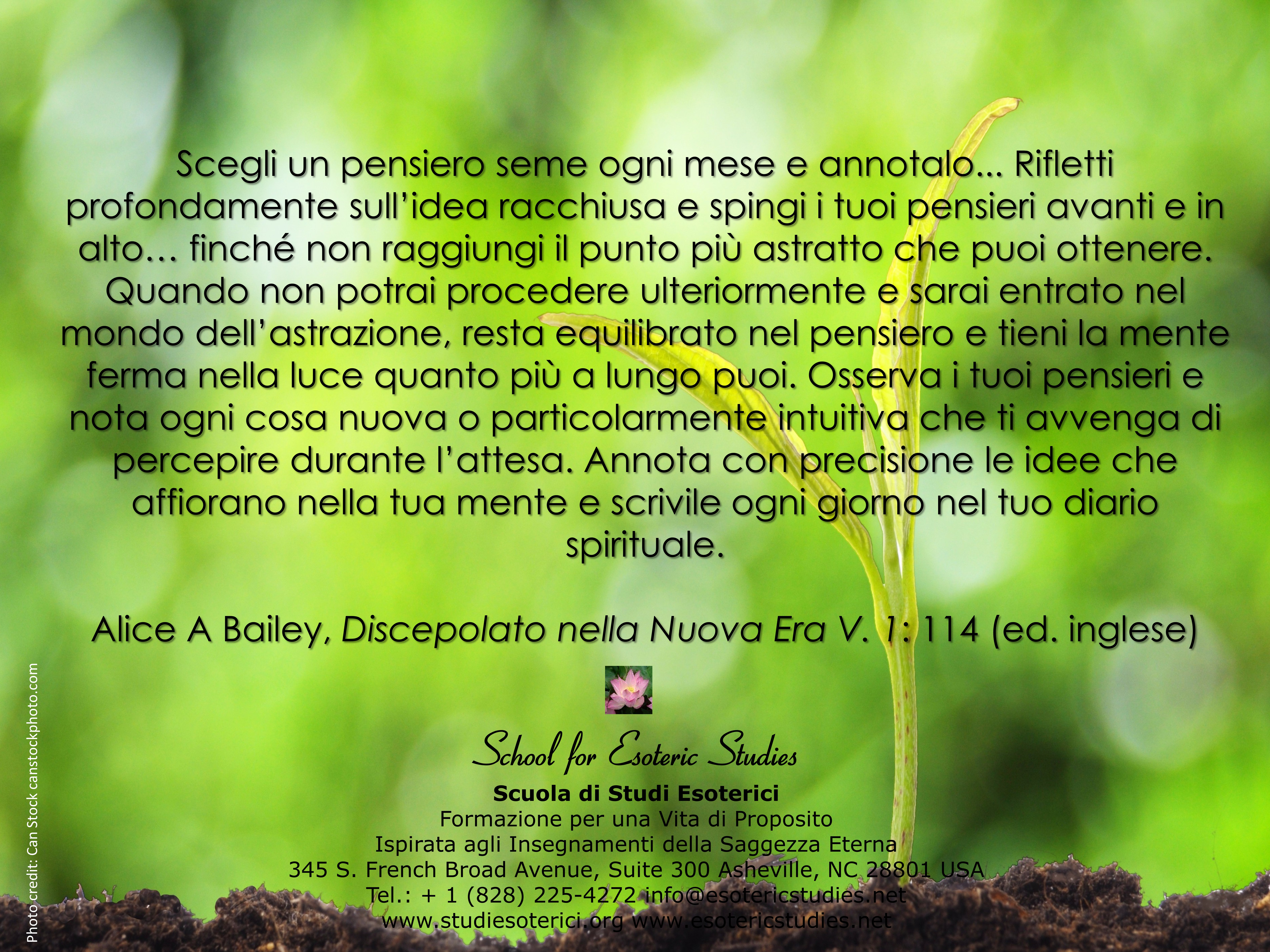 L'obiettivo principale della meditazione creativa è il servizio. La seguente serie di immagini e citazioni cerca di promuovere un senso di integrazione e sintesi mediante la tecniche della meditazione creativa, la cui è sviluppata in dettaglio durante l'arco di formazione della Scuola di Studi Esoterici e negli presentazioni di Alice Bailey.