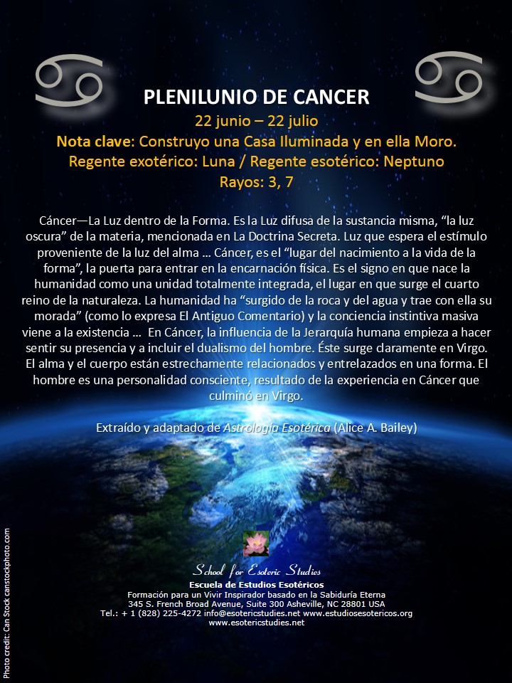 «La meditación del alma es de naturaleza rítmica y cíclica como lo es todo en el cosmos. El alma respira y su forma vive por ello. La naturaleza rítmica de la meditación del alma no debe ser pasada por alto en la vida del aspirante. Hay un flujo y reflujo en toda la naturaleza, y en la marea del océano vemos la maravillosa representación de una ley eterna. (...) la idea de la respuesta cíclica al impulso del alma se halla detrás de las actividades de la meditación matutina, del recogimiento del mediodía y de la recapitulación vespertina. En los aspectos de Luna Llena y Luna Nueva tenemos un ciclo mayorde flujo y reflujo». (Alice A. Bailey)