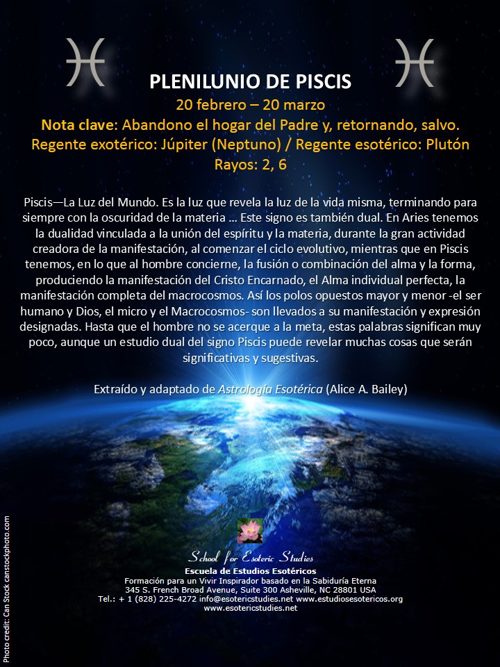 | Piscis | 09 marzo 2020 / 05:48 | Abandono el hogar del Padre y, retornando, salvo. |