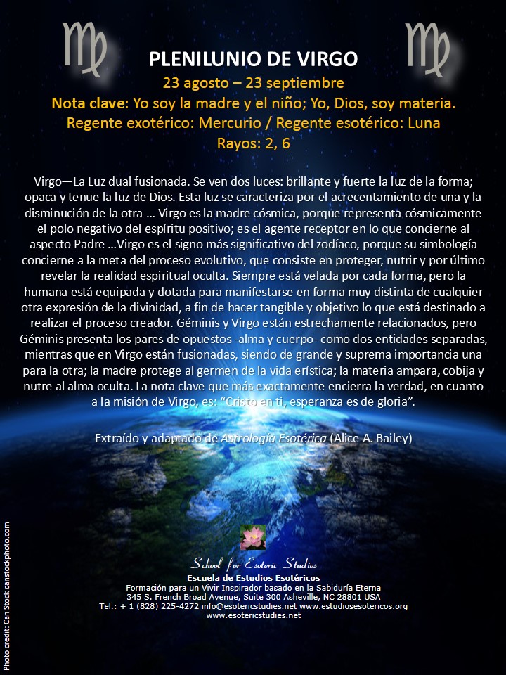 | Virgo | 02 sept 2020 / 05:22 | Yo soy la madre y el niño; Yo, Dios, soy materia. |